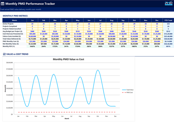 ✔️ Quantifies PMO Value – Move from perception to proof